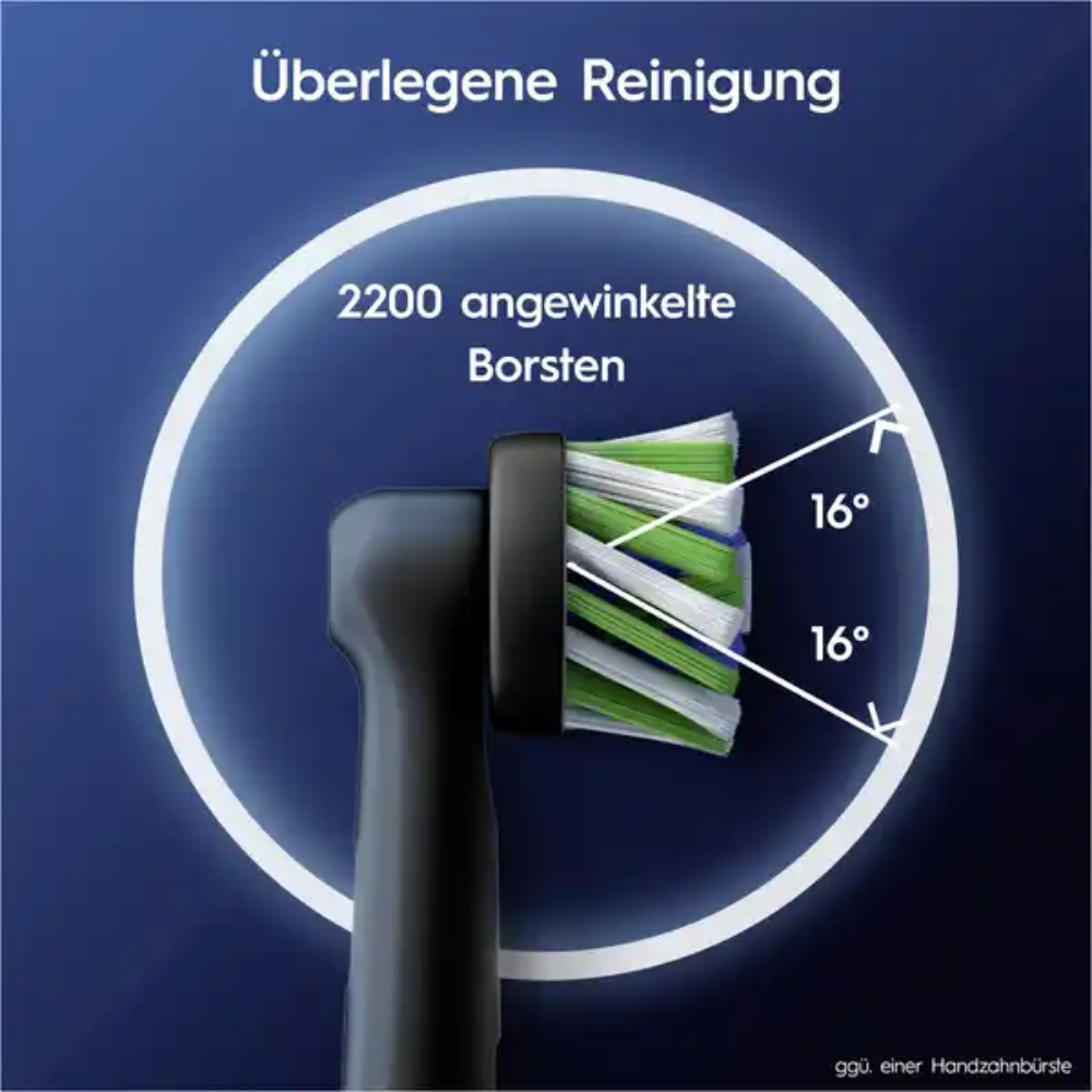 Đầu bàn chải có lông chải góc cạnh 16 độ, giúp làm sạch mảng bám tốt hơn 100% so với bàn chải thủ công.