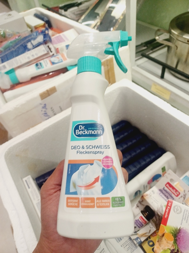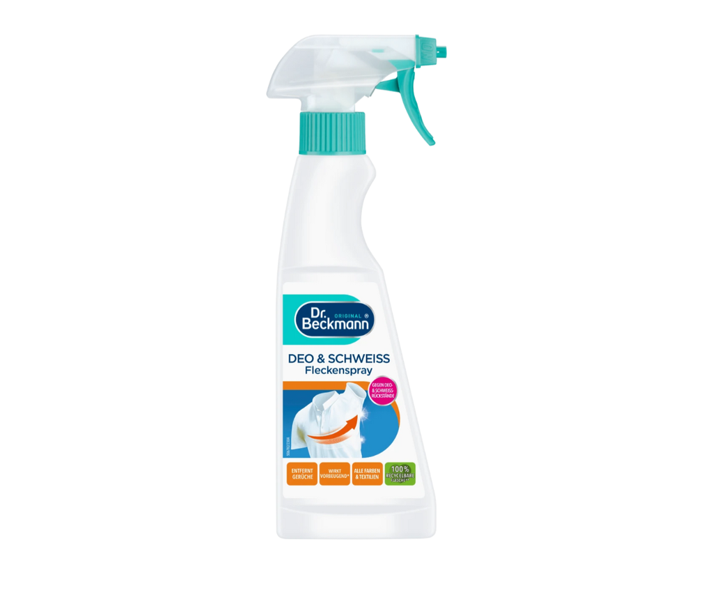 Chai xịt tẩy vết bẩn Dr. Beckmann Deo & Schweiß Fleckenspray (Xịt tẩy vết bẩn do mồ hôi,mốc và chất khử mùi quần áo).